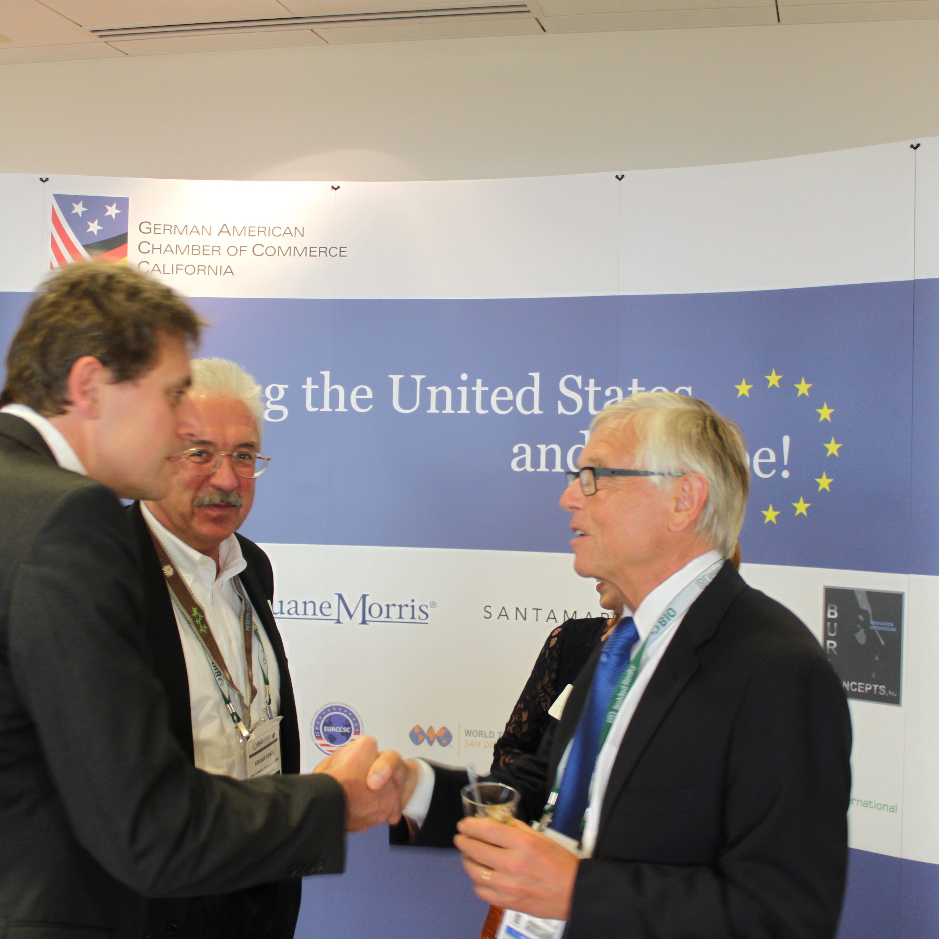 The German American Chamber of Commerce California was proud to host the BIO 2014 International Evening Reception on June 24, 2014. It was an inspiring evening with BIO 2014 delegates from abroad as well as local businesses while overlooking beautiful Downtown San Diego and the harbor. The event speakers Joe Panetta (President and CEO, BIOCOM), Prof. Dr. Thilo Hoelscher (BURL Concepts), Peggy Fleming (German American Chamber of Commerce California) and Mark Ballam (World Trade Center San Diego) made this event a unique opportunity to meet, mingle and build meaningful relationships.