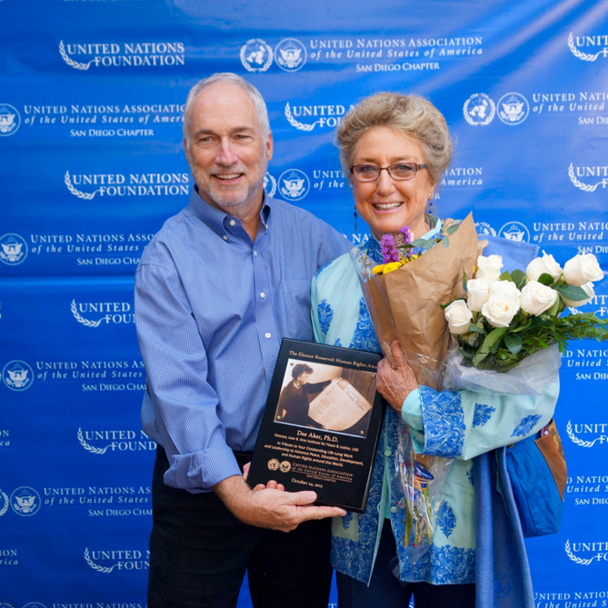 At the luncheon guest of honor, Ford Roosevelt, Grandson of President Franklin Roosevelt and Eleanor Roosevelt, Keynote Speaker Stephen O’Dowd, Director of the Office of Economic and Development Affairs for the U.S. State Department and Chris Whatley, President of the UN Association of the United States of America were warmly welcomed by the Gala Chairs Joanne Tawfilis, U. S. National Commissioner, UNESCO President and Bettina Hausmann, UN Association San Diego. Furthermore Dr. Dee Aker, Director of the Institute of Peace & Justice at USD was honored with the prestigious Eleanor Roosevelt Human Rights Award.