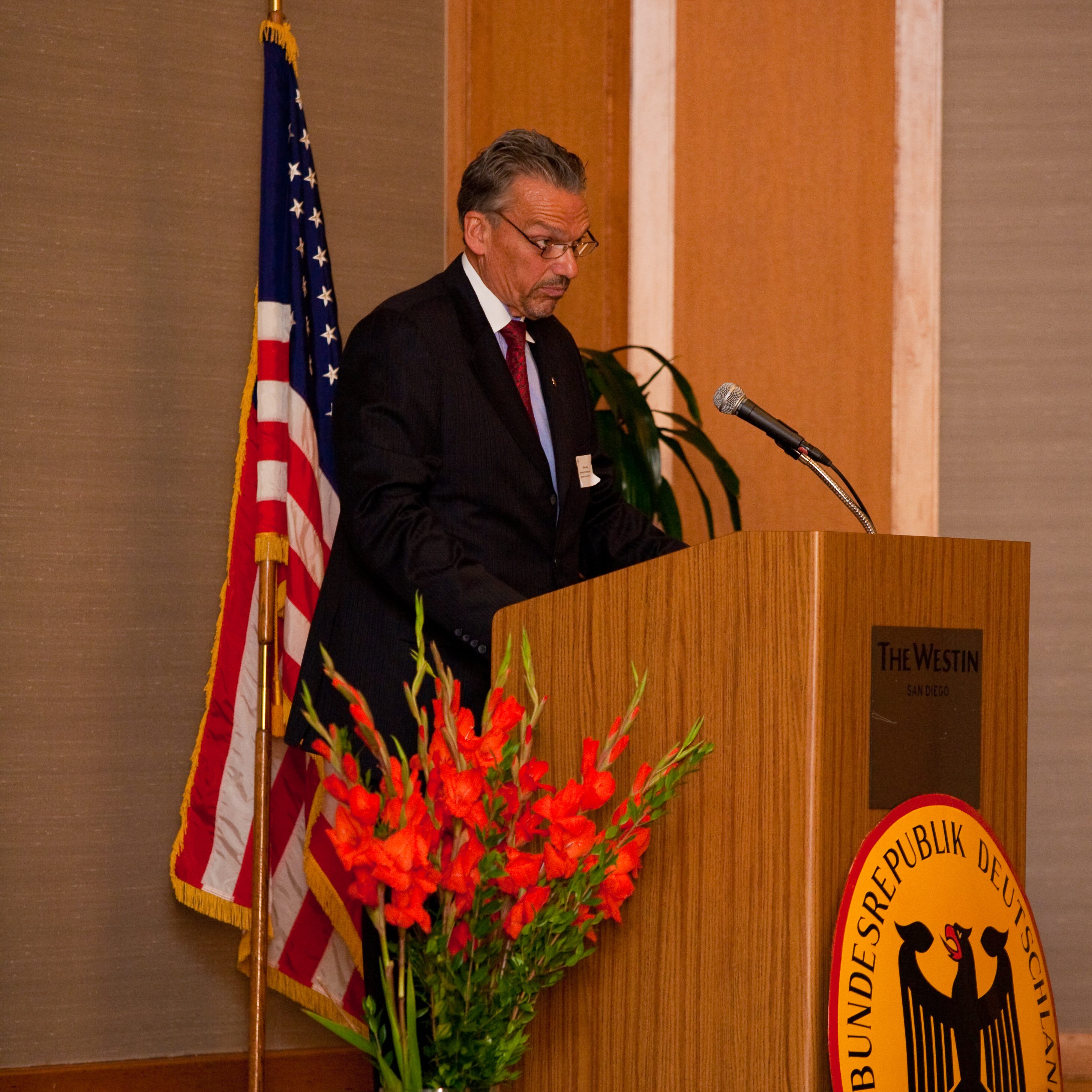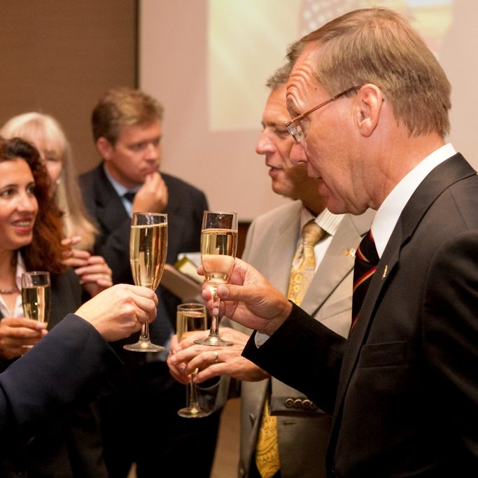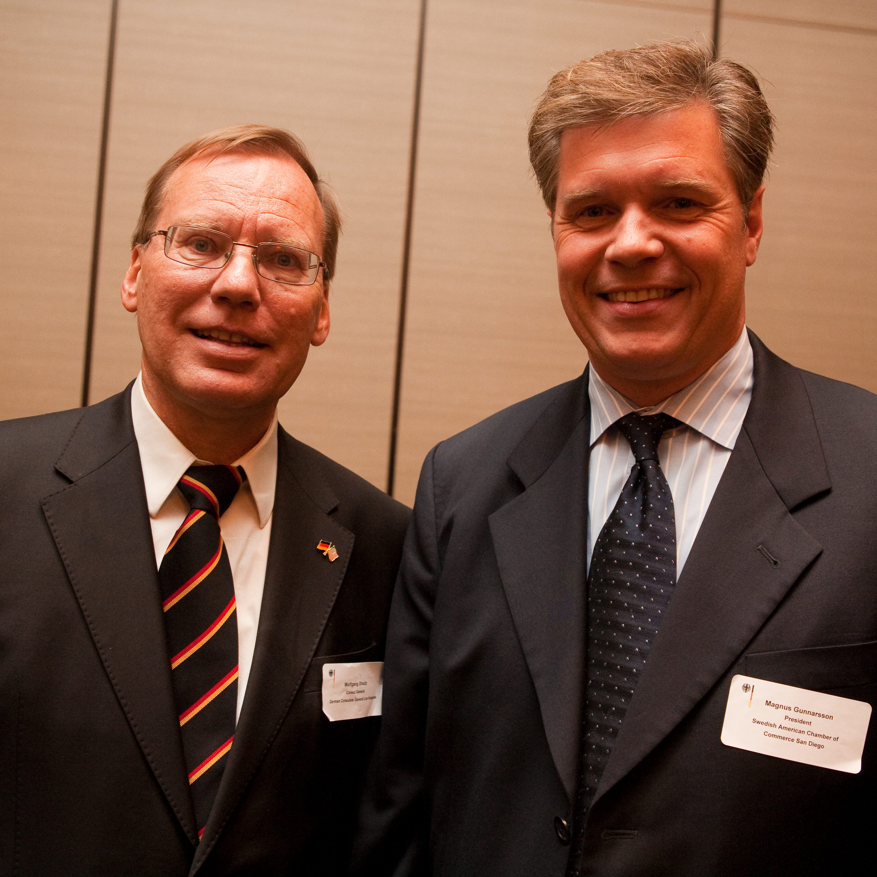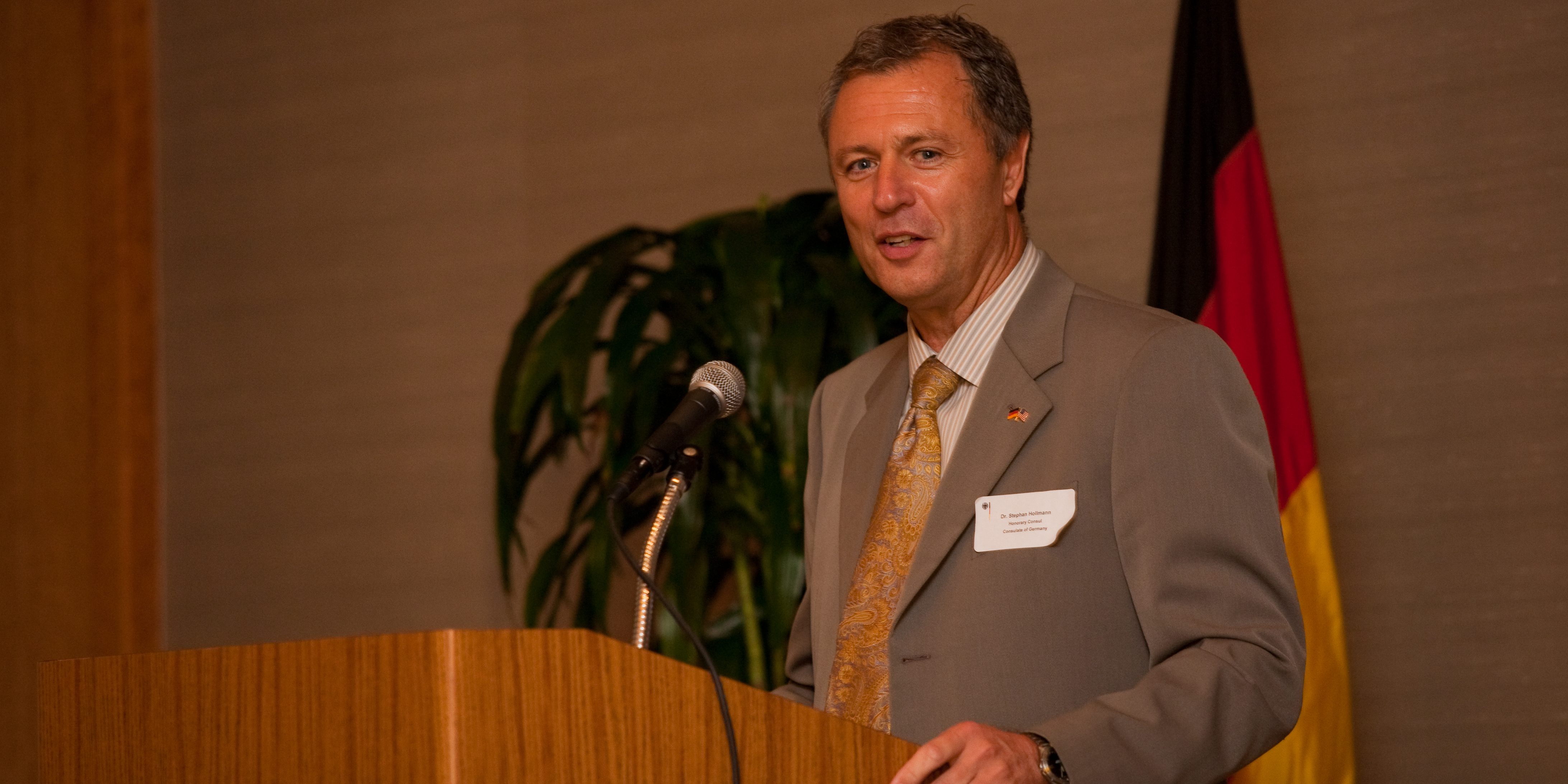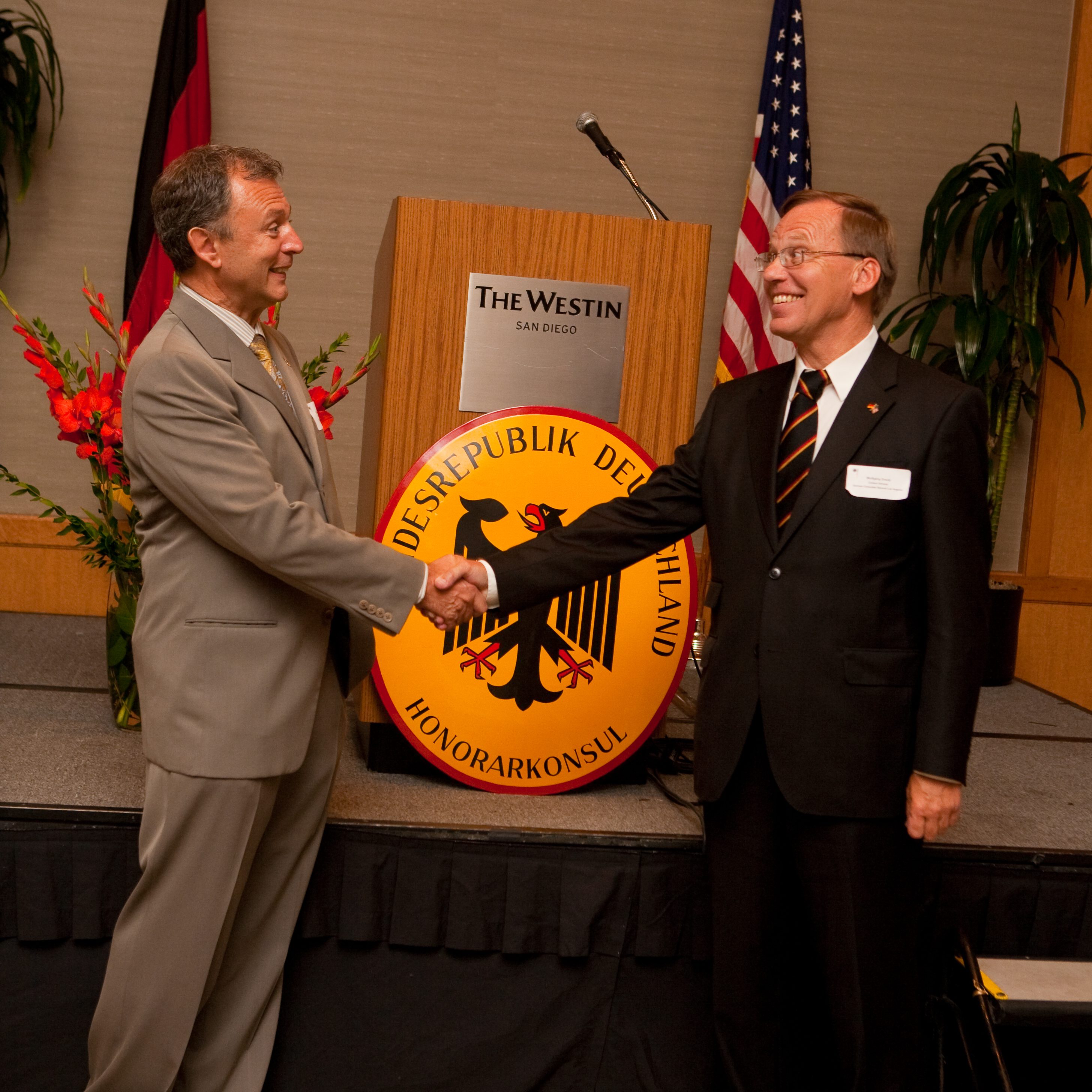Dr. Hollmann laid out his vision about how to foster German American relations as well as how to bring the German community closer together. “I am extremely honored by this appointment, and am especially pleased to be able to help open a whole new range of possibilities for exchange in commerce, science and culture between Germany and the United States”, he said. Consul General Wolfgang Drautz (Los Angeles) introduced the new Honorary Consul to the San Diego community. He was accompanied by the head of the Consular Section, Mr. Ulrich Fischer, as well as the head of the Cultural and Press section, Mr. Michael Ott.