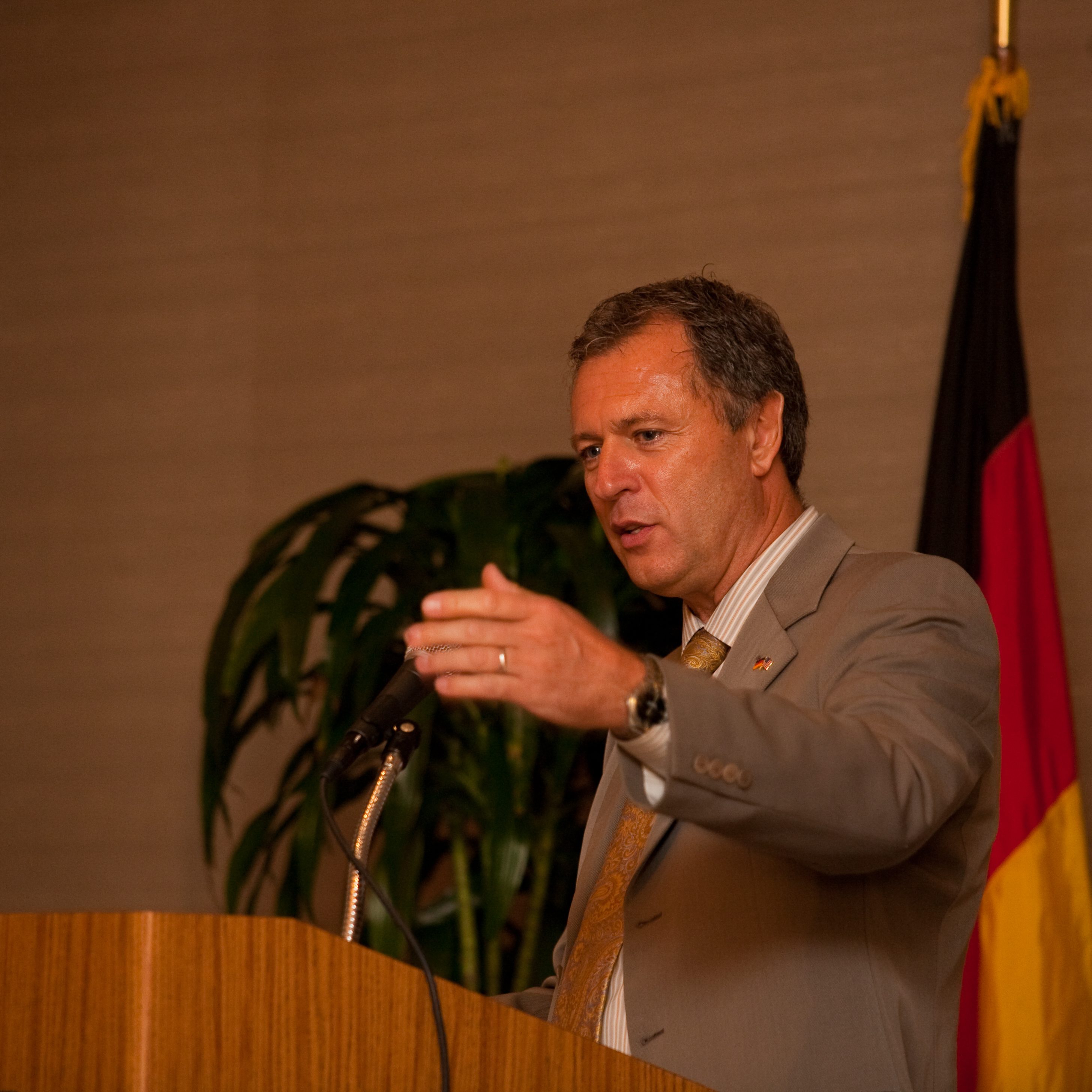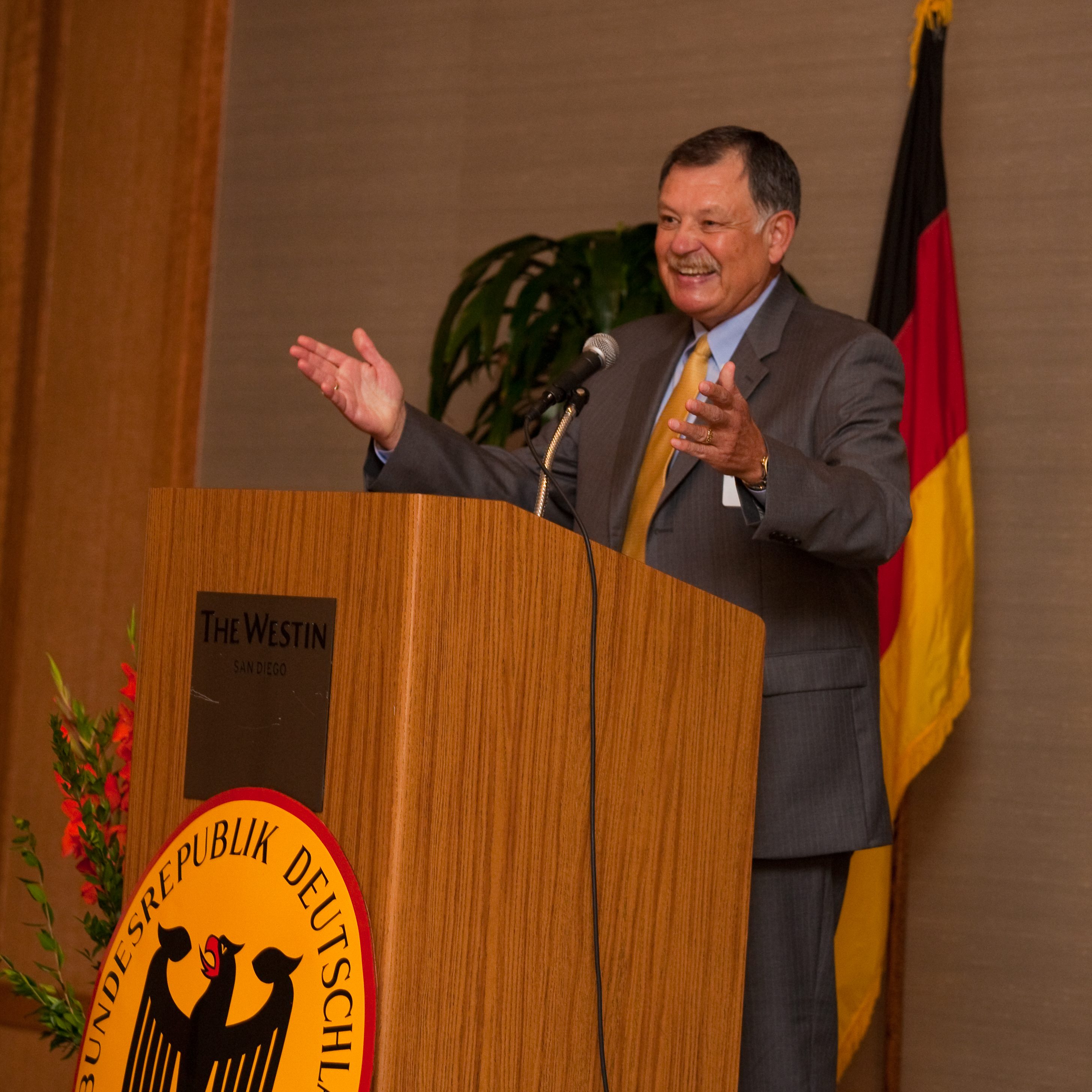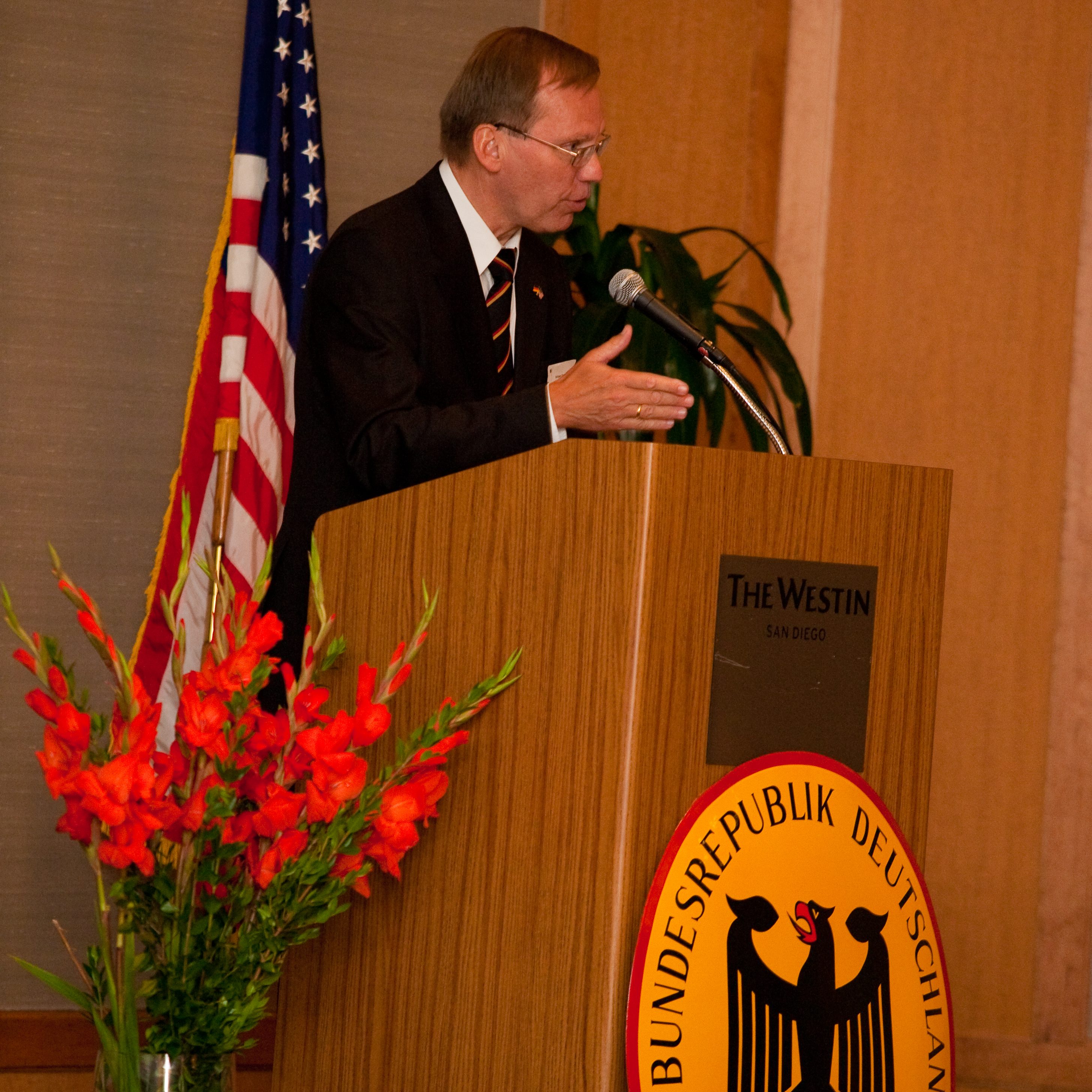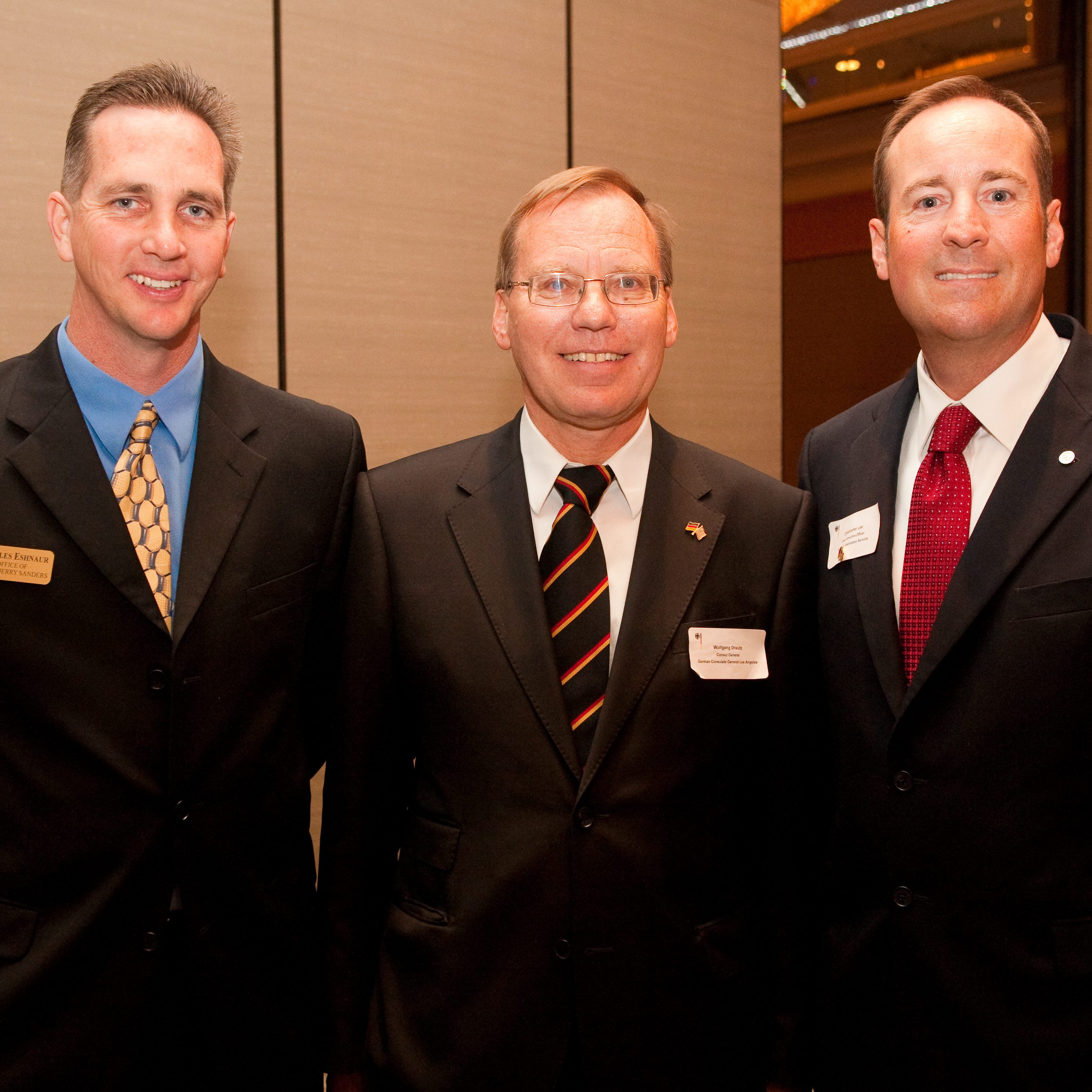 Dr. Hollmann laid out his vision about how to foster German American relations as well as how to bring the German community closer together. “I am extremely honored by this appointment, and am especially pleased to be able to help open a whole new range of possibilities for exchange in commerce, science and culture between Germany and the United States”, he said. Consul General Wolfgang Drautz (Los Angeles) introduced the new Honorary Consul to the San Diego community. He was accompanied by the head of the Consular Section, Mr. Ulrich Fischer, as well as the head of the Cultural and Press section, Mr. Michael Ott.