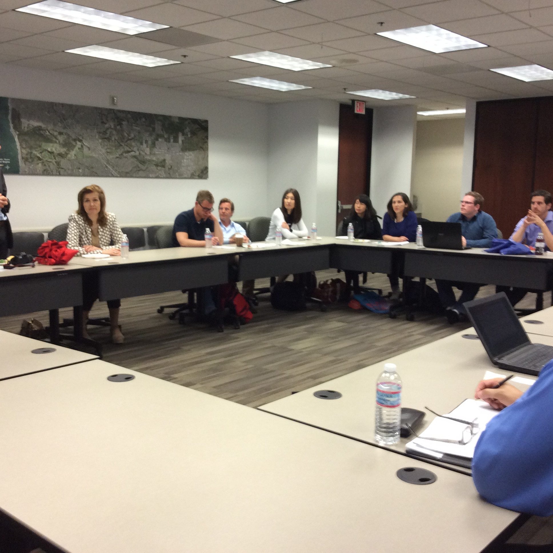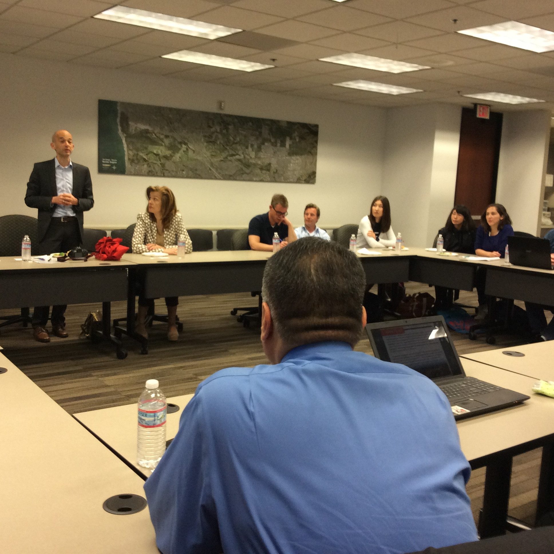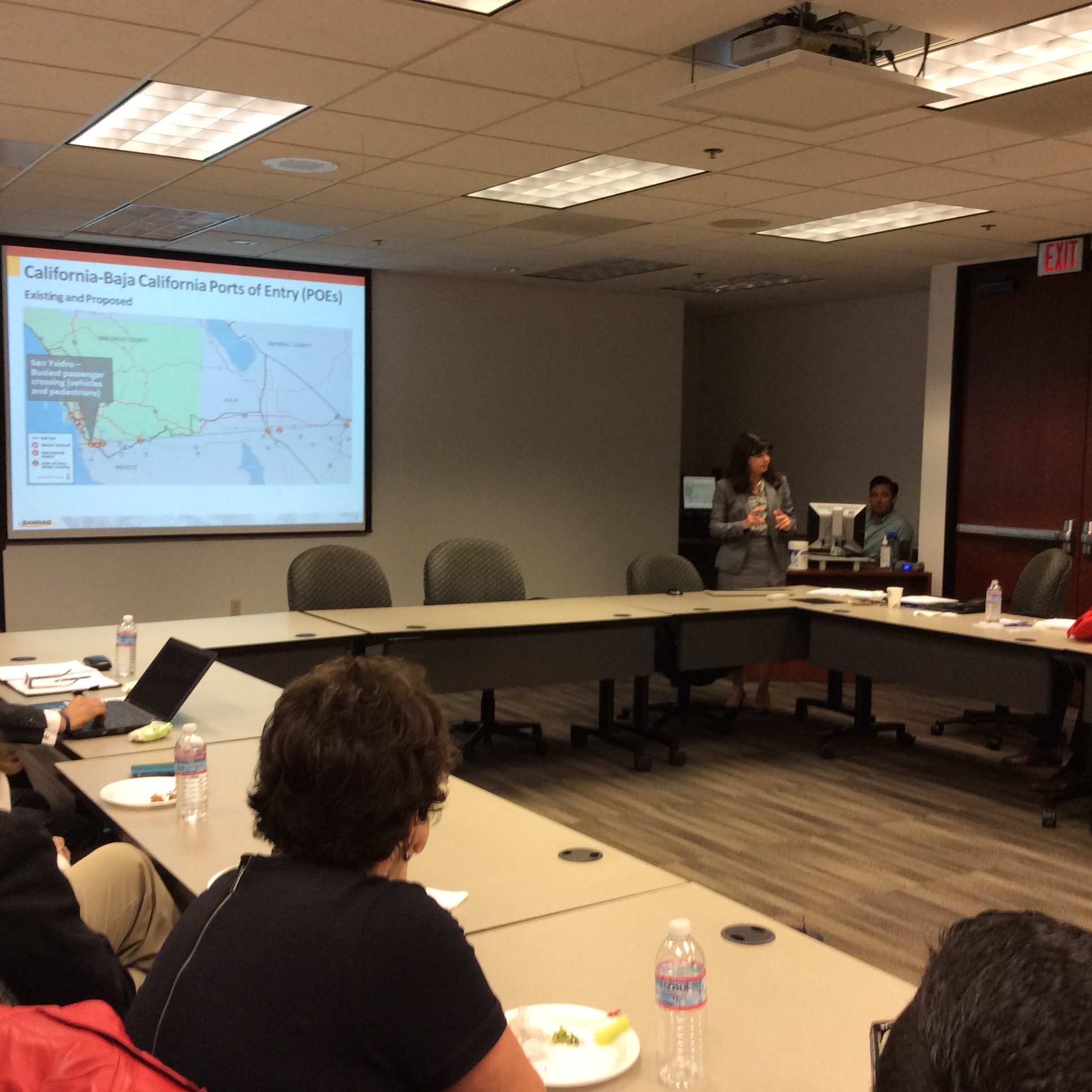 Each year, SDSU’s Center for International Business Education and Research (CIBER) welcomes students and faculty from the Berlin School of Economics and Law here in San Diego. Within the scope of their tight week-long program they visited the offices of San Diego Association of Governments (SANDAG) to learn more about the San Diego / Tijuana economic mega region, current cross-border developments and the bi-lateral relations between San Diego and Baja California. Speakers included Elisa Arias from SANDAG, Allen Vigil from Grupo Logistics and Arturo Gonzales from the City of Tijuana. The discussions were opened by Peggy Fleming from the German American Chamber of Commerce California which co-sponsored the event. The German students are joining their counterparts from San Diego State University, and are touring in Southern California and taking lectures at SDSU for one week. The German students were accompanied by Vice President Prof. Dr. Andreas Zaby from Berlin. Transatlantic business is a strong focus for the group from Berlin, and the discussions ranged from T-TIP to the close trade relationships with Mexico. I big thank-you to the speakers for taking the time out of their busy schedules, as well as to SANDAG for providing the location.